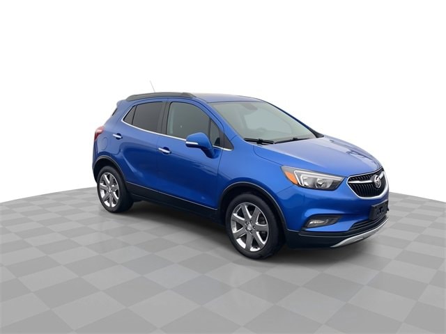 Bluetooth, Backup camera, **LEATHER**, Encore Preferred II, 4D Sport Utility, 120-Volt Power Outlet, 18 7-Spoke Chromed Aluminum Wheels, 6-Speaker Audio System, Auto-Dimming Inside Rear-View Mirror, Experience Buick Package, Front Fog Lamps, Power Tilt-Sliding Moonroof, Preferred Equipment Group 1SD, Radio: Buick Infotainment System AM/FM w/Nav, Rear Cross-Traffic Alert, Remote Vehicle Starter System, Side Blind Zone Alert, SiriusXM Satellite Radio, 18 Aluminum Wheels, 2-Way Manual Front Passenger Seat Adjuster, 3.53 Final Drive Axle Ratio, 4-Wheel Disc Brakes, 6 Speakers, 6-Way Power Driver Seat Adjuster, ABS brakes, Air Conditioning, Alloy wheels, AM/FM radio: SiriusXM, Apple CarPlay/Android Auto, Auto-dimming Rear-View mirror, Automatic temperature control, Brake assist, Bumpers: body-color, Cloth w/Leatherette Seat Trim, Compass, Delay-off headlights, Driver door bin, Driver vanity mirror, Driver's Seat Mounted Armrest, Dual front impact airbags, Dual front side impact airbags, Electronic Stability Control, Emergency communication system: OnStar Guidance, Exterior Parking Camera Rear, Front anti-roll bar, Front Bucket Seats, Front dual zone A/C, Front fog lights, Front License Plate Bracket, Front reading lights, Front wheel independent suspension, Fully automatic headlights, Heated door mirrors, Illuminated entry, Knee airbag, Low tire pressure warning, Occupant sensing airbag, Outside temperature display, Overhead airbag, Panic alarm, Passenger door bin, Passenger vanity mirror, Power door mirrors, Power driver seat, Power steering, Power windows, Radio data system, Radio: Buick Infotainment System AM/FM Stereo, Rear seat center armrest, Rear side impact airbag, Rear window defroster, Rear window wiper, Remote keyless entry, Ride & Handling Suspension, Roof rack: rails only, Security system, Speed control, Speed-sensing steering, Split folding rear seat, Spoiler, Steering wheel mounted audio controls, Tachometer, Telescoping steering wheel, Tilt steering wheel, Traction control, Trip computer, Turn signal indicator mirrors, Variably intermittent wipers, Encore Preferred II, 4D Sport Utility, 120-Volt Power Outlet, 18 7-Spoke Chromed Aluminum Wheels, 6-Speaker Audio System, Auto-Dimming Inside Rear-View Mirror, Experience Buick Package, Front Fog Lamps, Power Tilt-Sliding Moonroof, Preferred Equipment Group 1SD, Radio: Buick Infotainment System AM/FM w/Nav, Rear Cross-Traffic Alert, Remote Vehicle Starter System, Side Blind Zone Alert, SiriusXM Satellite Radio. Coastal Blue Metallic 2018 Buick Encore Preferred II FWD 6-Speed Automatic Electronic with Overdrive ECOTEC 1.4L I4 SMPI DOHC Turbocharged VVT