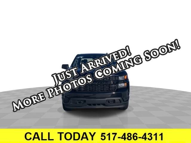 Clean CARFAX. Bluetooth, Backup camera, Silverado 1500 Custom, 4D Crew Cab, 2.7L Turbo, 8-Speed Automatic, 4WD, Jet Black w/Cloth Seat Trim, 170 Amp Alternator, 3.5 Diagonal Monochromatic Display, 4G LTE Wi-Fi Hot Spot Capable, Black Name Plates (LPO), Bluetooth® For Phone, Body Color Grille, Chevrolet Connected Access Capable, Color-Keyed Carpeting Floor Covering, Compass, Custom Convenience Package, Custom Value Package, Dark Essentials Package (LPO), Deep-Tinted Glass, Electric Rear-Window Defogger, Electronic Cruise Control, EZ Lift Power Lock & Release Tailgate, Front Frame-Mounted Black Recovery Hooks, Front Rubberized Vinyl Floor Mats, Hitch Guidance, Infotainment Package, LED Cargo Area Lighting, Manual Tilt Wheel Steering Column, OnStar & Chevrolet Connected Services Capable, Power Door Locks, Power Front Windows w/Driver Express Up/Down, Power Front Windows w/Passenger Express Down, Power Rear Windows w/Express Down, Preferred Equipment Group 1CX, Rear 60/40 Folding Bench Seat (Folds Up), Rear Rubberized-Vinyl Floor Mats, Remote Keyless Entry, Remote Vehicle Starter System, SiriusXM Radio, Standard Tailgate, Theft Deterrent System (Unauthorized Entry), Trailering Package, 120-Volt Bed Mounted Power Outlet, 120-Volt Instrument Panel Power Outlet, 3.42 Rear Axle Ratio, 4-Wheel Disc Brakes, 40/20/40 Front Split Bench Seat, 6 Speakers, ABS brakes, Air Conditioning, Alloy wheels, AM/FM radio: SiriusXM, Apple CarPlay/Android Auto, Black Tailgate CHEVROLET Lettering (LPO), Brake assist, Bumpers: body-color, Cloth Seat Trim, Delay-off headlights, Driver door bin, Driver vanity mirror, Dual front impact airbags, Dual front side impact airbags, Electronic Stability Control, Front anti-roll bar, Front Black Bowtie Emblem (LPO), Front Center Armrest w/Storage, Front reading lights, Front wheel independent suspension, Fully automatic headlights, Heated door mirrors, Heavy Duty Suspension, Illuminated entry, Low tire pressure warning, Occupant sensing airbag, Outside temperature display, Overhead airbag, Overhead console, Panic alarm, Passenger door bin, Passenger vanity mirror, Polished Exhaust Tip, Power door mirrors, Power steering, Power windows, Premium audio system: Chevrolet Infotainment 3, Radio data system, Radio: Chevrolet Infotainment 3 System, Rear reading lights, Rear step bumper, Rear window defroster, Remote keyless entry, Security system, Single-Zone Manual/Semi-Automatic Air Conditioning, Speed control, Speed-sensing steering, Split folding rear seat, Tachometer, Tilt steering wheel, Traction control, Trip computer, Variably intermittent wipers, Voltmeter, Wheels: 20 x 9 Bright Silver Painted Aluminum, Silverado 1500 Custom, 4D Crew Cab, 2.7L Turbo, 8-Speed Automatic, 4WD, Jet Black w/Cloth Seat Trim, 170 Amp Alternator, 3.5 Diagonal Monochromatic Display, 4G LTE Wi-Fi Hot Spot Capable, Black Name Plates (LPO), Bluetooth® For Phone, Body Color Grille, Chevrolet Connected Access Capable, Color-Keyed Carpeting Floor Covering, Compass, Custom Convenience Package, Custom Value Package, Dark Essentials Package (LPO), Deep-Tinted Glass, Electric Rear-Window Defogger, Electronic Cruise Control, EZ Lift Power Lock & Release Tailgate, Front Frame-Mounted Black Recovery Hooks, Front Rubberized Vinyl Floor Mats, Hitch Guidance, Infotainment Package, LED Cargo Area Lighting, Manual Tilt Wheel Steering Column, OnStar & Chevrolet Connected Services Capable, Power Door Locks, Power Front Windows w/Driver Express Up/Down, Power Front Windows w/Passenger Express Down, Power Rear Windows w/Express Down, Preferred Equipment Group 1CX, Rear 60/40 Folding Bench Seat (Folds Up), Rear Rubberized-Vinyl Floor Mats, Remote Keyless Entry, Remote Vehicle Starter System, SiriusXM Radio, Standard Tailgate, Theft Deterrent System (Unauthorized Entry), Trailering Package. Black 2021 Chevrolet Silverado 1500 Custom 4WD 8-Speed Automatic 2.7L TurboRecent Arrival!