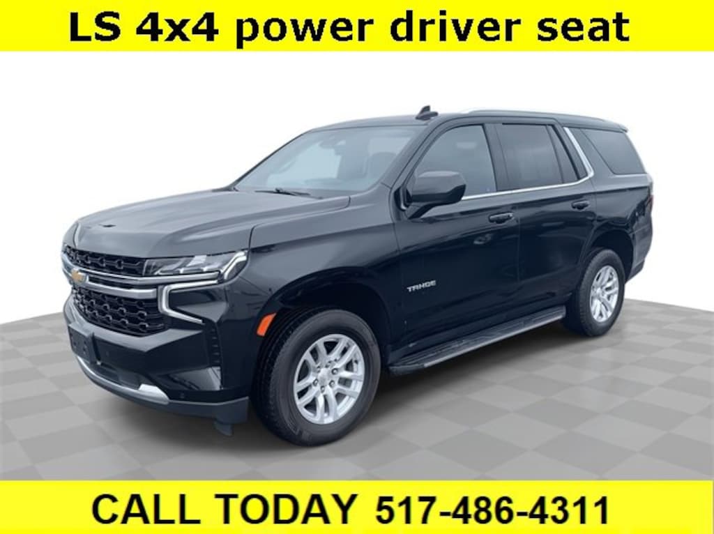 Bluetooth, Backup camera, Tahoe LS, 4D Sport Utility, EcoTec3 5.3L V8, 10-Speed Automatic with Overdrive, 4WD, Jet Black w/Cloth Seat Trim, 1st & 2nd Row Color-Keyed Carpeted Floor Mats, Automatic Stop/Start, Color-Keyed Carpeting Floor Covering, Driver & Front Outboard Passenger Airbags, Floor Console w/Storage Area, Leather-Wrapped Steering Wheel, LED Daytime Running Lamps, Preferred Equipment Group 1LS, Remote Start, SiriusXM Radio w/360L, Start/Stop System Disable Button, 3.23 Rear Axle Ratio, 3rd row seats: split-bench, 4-Wheel Disc Brakes, 6 Speakers, 6-Speaker Audio System Feature, ABS brakes, Air Conditioning, Alloy wheels, AM/FM radio: SiriusXM with 360L, Apple CarPlay/Android Auto, Auto High-beam Headlights, Automatic temperature control, Brake assist, Bumpers: body-color, Compass, Delay-off headlights, Driver door bin, Driver vanity mirror, Dual front impact airbags, Dual front side impact airbags, Electronic Stability Control, Emergency communication system: OnStar and Chevrolet connected services capable, Four wheel independent suspension, Front anti-roll bar, Front Bucket Seats, Front Center Armrest, Front dual zone A/C, Front High-Back Reclining Bucket Seats, Front reading lights, Fully automatic headlights, Heated door mirrors, Illuminated entry, Infotainment Display, Leather steering wheel, Low tire pressure warning, Occupant sensing airbag, Outside temperature display, Overhead airbag, Overhead console, Panic alarm, Passenger door bin, Passenger vanity mirror, Power door mirrors, Power driver seat, Power passenger seat, Power steering, Power windows, Premium audio system: Chevrolet Infotainment System 3, Premium Cloth Seat Trim, Premium Smooth Ride Suspension, Radio: Chevrolet Infotainment 3 System, Rain sensing wipers, Rear air conditioning, Rear anti-roll bar, Rear reading lights, Rear seat center armrest, Rear window defroster, Rear window wiper, Remote keyless entry, Roof rack: rails only, Security system, Speed control, Speed-sensing steering, Split folding rear seat, Spoiler, Steering wheel mounted audio controls, Tachometer, Telescoping steering wheel, Tilt steering wheel, Traction control, Trip computer, Variably intermittent wipers, Voltmeter, Wheels: 18 x 8.5 Bright Silver Painted Aluminum, Tahoe LS, 4D Sport Utility, EcoTec3 5.3L V8, 10-Speed Automatic with Overdrive, 4WD, Jet Black w/Cloth Seat Trim, 1st & 2nd Row Color-Keyed Carpeted Floor Mats, Automatic Stop/Start, Color-Keyed Carpeting Floor Covering, Driver & Front Outboard Passenger Airbags, Floor Console w/Storage Area, Leather-Wrapped Steering Wheel, LED Daytime Running Lamps, Preferred Equipment Group 1LS, Remote Start, SiriusXM Radio w/360L, Start/Stop System Disable Button. Black 2022 Chevrolet Tahoe LS 4WD 10-Speed Automatic with Overdrive EcoTec3 5.3L V8