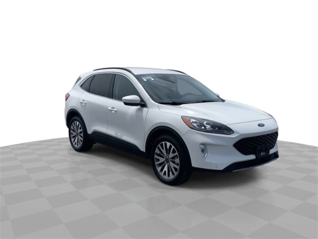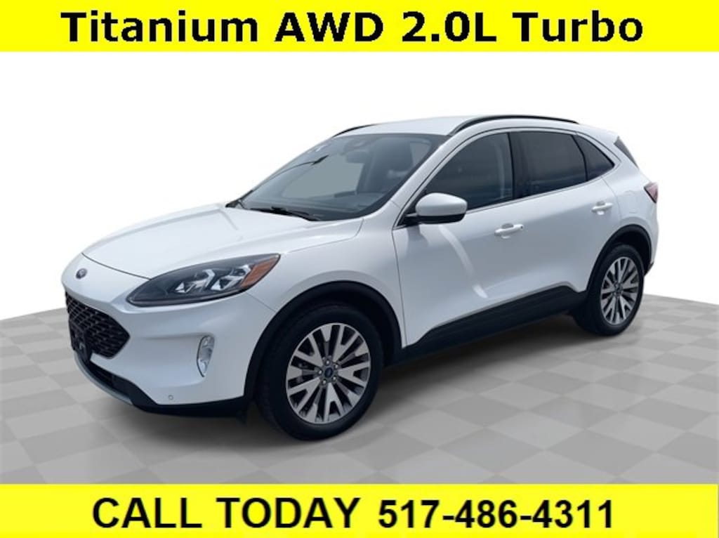 CARFAX One-Owner. Clean CARFAX. Bluetooth, Backup camera, Escape Titanium, 4D Sport Utility, EcoBoost 2.0L I4 GTDi DOHC Turbocharged VCT, AWD, Equipment Group 401A, Navigation System, 3.47 Axle Ratio, 4-Wheel Disc Brakes, 6 Speakers, ABS brakes, Air Conditioning, Alloy wheels, AM/FM radio: SiriusXM, AM/FM Stereo, Auto High-beam Headlights, Auto-dimming Rear-View mirror, Automatic temperature control, Brake assist, Bumpers: body-color, Compass, Delay-off headlights, Driver door bin, Driver vanity mirror, Dual front impact airbags, Dual front side impact airbags, Electronic Stability Control, Emergency communication system: SYNC 3 911 Assist, Exterior Parking Camera Rear, FordPass Connect, Four wheel independent suspension, Front anti-roll bar, Front Bucket Seats, Front Center Armrest, Front dual zone A/C, Front fog lights, Front reading lights, Fully automatic headlights, Garage door transmitter, Heated ActiveX Trimmed Front Sport Contour Bucket Seats, Heated door mirrors, Heated front seats, Heated steering wheel, Illuminated entry, Knee airbag, Low tire pressure warning, Memory seat, Occupant sensing airbag, Outside temperature display, Overhead airbag, Overhead console, Panic alarm, Passenger door bin, Passenger vanity mirror, Power door mirrors, Power driver seat, Power Liftgate, Power passenger seat, Power steering, Power windows, Radio data system, Rain sensing wipers, Rear anti-roll bar, Rear reading lights, Rear seat center armrest, Rear window defroster, Rear window wiper, Remote keyless entry, Roof rack: rails only, Security system, Speed control, Speed-sensing steering, Speed-Sensitive Wipers, Split folding rear seat, Spoiler, Steering wheel mounted audio controls, SYNC 3 Communications & Entertainment System, Tachometer, Telescoping steering wheel, Tilt steering wheel, Traction control, Trip computer, Variably intermittent wipers, Voice-Activated Touchscreen Navigation System, Wheels: 19 Machined-Face Aluminum, Escape Titanium, 4D Sport Utility, EcoBoost 2.0L I4 GTDi DOHC Turbocharged VCT, AWD, Equipment Group 401A, Navigation System. Star White Metallic Tri-Coat 2022 Ford Escape Titanium AWD 8-Speed Automatic EcoBoost 2.0L I4 GTDi DOHC Turbocharged VCT