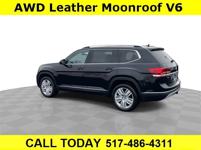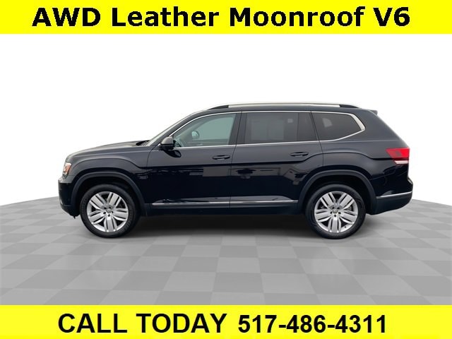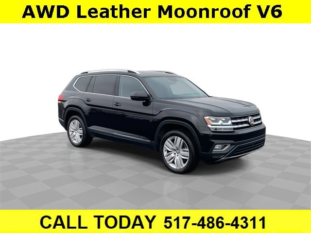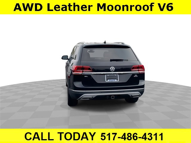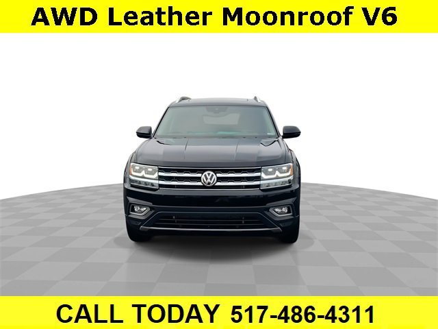 CARFAX One-Owner. Clean CARFAX. Bluetooth, Backup camera, **LEATHER**, **SUNROOF / MOONROOF**, Atlas SEL Premium 4Motion, 4D Sport Utility, 3.6L V6, 8-Speed Automatic with Tiptronic, AWD, 2nd Row Captain's Chairs, 2nd-Row Dual Captain Chairs Package, Navigation System, Trailer Hitch Extras, 12 Speakers, 3.60 Axle Ratio, 3rd row seats: split-bench, 4-Wheel Disc Brakes, ABS brakes, Air Conditioning, Alloy wheels, AM/FM radio: SiriusXM, Auto High-beam Headlights, Auto-dimming Rear-View mirror, Automatic temperature control, Brake assist, Bumpers: body-color, Compass, Delay-off headlights, Driver door bin, Driver vanity mirror, Dual front impact airbags, Dual front side impact airbags, Electronic Stability Control, Emergency communication system: VW Car-Net, Four wheel independent suspension, Front anti-roll bar, Front Bucket Seats, Front Center Armrest, Front dual zone A/C, Front fog lights, Front reading lights, Garage door transmitter: HomeLink, Heated door mirrors, Heated front seats, Heated rear seats, Heated steering wheel, Heated/Ventilated Front Bucket Seats, Heavy Duty Trunk Liner w/VW CarGo Blocks, Illuminated entry, Low tire pressure warning, Luggage Net, Memory seat, Occupant sensing airbag, Outside temperature display, Overhead airbag, Overhead console, Panic alarm, Passenger door bin, Passenger vanity mirror, Perforated Vienna Leather Seating Surfaces, Power door mirrors, Power driver seat, Power Liftgate, Power moonroof, Power passenger seat, Power steering, Power windows, Radio data system, Radio: Discover Media 8.0 Touchscreen w/CD/Nav, Rain sensing wipers, Rear air conditioning, Rear anti-roll bar, Rear audio controls, Rear reading lights, Rear seat center armrest, Rear window defroster, Rear window wiper, Remote CD player, Remote keyless entry, Roadside Assistance Kit, Roof rack: rails only, Rubber Mats Kit - Captain's Chairs, Security system, Speed control, Speed-sensing steering, Split folding rear seat, Spoiler, Standard Suspension, Steering wheel mounted audio controls, Tachometer, Telescoping steering wheel, Tilt steering wheel, Traction control, Trip computer, Turn signal indicator mirrors, Variably intermittent wipers, Ventilated front seats, Wheels: 20 Mejorada Alloy, Atlas SEL Premium 4Motion, 4D Sport Utility, 3.6L V6, 8-Speed Automatic with Tiptronic, AWD, 2nd Row Captain's Chairs, 2nd-Row Dual Captain Chairs Package, Navigation System, Trailer Hitch Extras. Deep Black Pearl 2018 Volkswagen Atlas SEL Premium 4Motion AWD 8-Speed Automatic with Tiptronic 3.6L V6