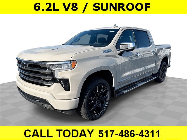 White Sands 2026 Chevrolet Silverado 1500 High Country 4WD 10-Speed Automatic EcoTec3 6.2L V8 **SUNROOF / MOONROOF**, **NAVIGATION / GPS**, 10-Speed Automatic, 4WD, Black Leather, 10-Way Power Driver Seat w/Lumbar, 10-Way Power Passenger Seat Adjuster w/Lumbar, 12.3 Multicolor Reconfigurable Digital Display, 120-Volt Bed Mounted Power Outlet, 120-Volt Interior Power Outlet, 15 Diagonal Multicolor Head-Up Display, 2 USB Data Ports, 2nd Row Heated Outboard Seats, Adaptive Cruise Control, All-Weather Floor Liner (LPO), Auto-Dimming Inside Rear-View Mirror, Auto-Locking Rear Differential, Bed View Camera, Bluetooth® For Phone, Chevytec Spray-On Black Bedliner, Chrome Assist Steps, Chrome Recovery Hooks, Color-Keyed Carpeting Floor Covering, Deep-Tinted Glass, Driver Memory, Dual Exhaust w/Polished Outlets, Dual Rear USB Ports (Charge Only), Electric Rear-Window Defogger, Floor Mounted Center Console, Front Carpeted Floor Mats, Front LED Fog Lamps, Front Rain-Sensing Wipers, Galvano Silver Painted Mirror Caps, HD Surround Vision, Heated Driver & Front Outboard Passenger Seats, Heated Steering Wheel, High Country Premium Package, Hitch Guidance, Hitch Guidance w/Hitch View, In-Vehicle Trailering System App, Integrated Trailer Brake Controller, Keyless Open & Start, LED Cargo Area Lighting, Navigation System, OnStar Services Capable, Outside Heated Power-Adjustable Mirrors, Perimeter Lighting, Power Front Passenger Windows w/Express Up/Down, Power Front Windows w/Driver Express Up/Down, Power Rear Windows w/Express Down, Power Sliding Rear Window w/Rear Defogger, Power Sunroof, Power Tailgate, Power Tilt & Telescoping Steering Column, Preferred Equipment Group 3LZ, Rear Camera Mirror, Rear Carpeted Floor Mats, Rear Cross Traffic Braking, Rear Pedestrian Alert, Rear Wheelhouse Liners, Remote Vehicle Starter System, Safety Alert Seat, SiriusXM w/360L Trial Subscription, Standard Tailgate, Steering Wheel Audio Controls, Technology Package, Teen Driver, Theft Deterrent System (Unauthorized Entry), Tire Pressure Monitoring System, Trailer Camera Provisions, Trailer Side Blind Zone Alert, Trailering Package, Ultrasonic Front & Rear Park Assist, Universal Home Remote, Up-Level Rear Seat w/Storage Package, Ventilated Driver & Front Passenger Seats, Wheels: 22 Carbon Flash Metallic (LPO), Wi-Fi Hot Spot Capable, Wrapped Steering Wheel.