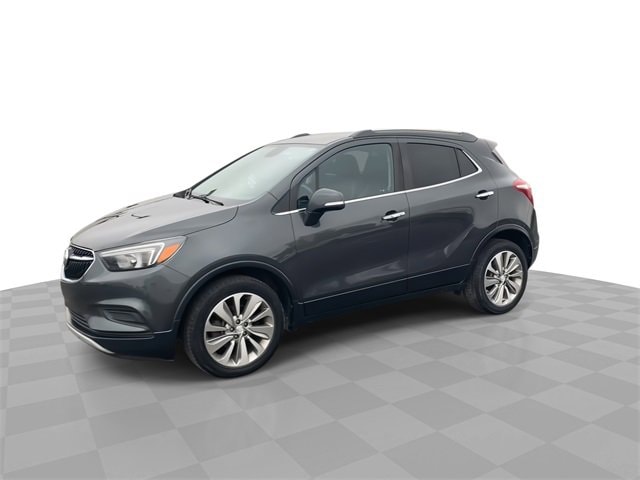 Clean CARFAX. Bluetooth, Backup camera, Encore Preferred, 4D Sport Utility, Preferred Equipment Group 1SB, 2-Way Manual Front Passenger Seat Adjuster, 3.53 Final Drive Axle Ratio, 4-Wheel Disc Brakes, 6 Speakers, 6-Way Power Driver Seat Adjuster, ABS brakes, Air Conditioning, Alloy wheels, AM/FM radio: SiriusXM, Apple CarPlay/Android Auto, Black Carbon Metallic Lower Exterior Accent Color, Brake assist, Bumpers: body-color, Cloth w/Leatherette Seat Trim, Compass, Delay-off headlights, Driver door bin, Driver vanity mirror, Driver's Seat Mounted Armrest, Dual front impact airbags, Dual front side impact airbags, Electronic Stability Control, Emergency communication system: OnStar Guidance, Exterior Parking Camera Rear, Front anti-roll bar, Front Bucket Seats, Front License Plate Bracket, Front reading lights, Front wheel independent suspension, Fully automatic headlights, Heated door mirrors, Illuminated entry, Knee airbag, Low tire pressure warning, Occupant sensing airbag, Outside temperature display, Overhead airbag, Panic alarm, Passenger door bin, Passenger vanity mirror, Power door mirrors, Power driver seat, Power steering, Power windows, Premium audio system: IntelliLink, Radio data system, Radio: Buick IntelliLink AM/FM Stereo, Rear seat center armrest, Rear side impact airbag, Rear window defroster, Rear window wiper, Remote keyless entry, Ride & Handling Suspension, Roof rack: rails only, Security system, SiriusXM Satellite Radio, Speed control, Speed-sensing steering, Split folding rear seat, Spoiler, Steering wheel mounted audio controls, Tachometer, Telescoping steering wheel, Tilt steering wheel, Traction control, Trip computer, Turn signal indicator mirrors, Variably intermittent wipers, Wheels: 18 Machined-Face Alloy, Encore Preferred, 4D Sport Utility, Preferred Equipment Group 1SB. Graphite Gray Metallic 2017 Buick Encore Preferred FWD 6-Speed Automatic Electronic with Overdrive ECOTEC 1.4L I4 SMPI DOHC Turbocharged VVT