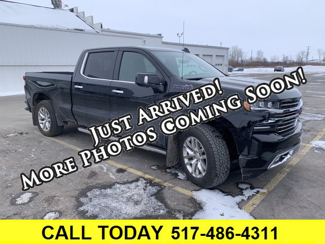 CARFAX One-Owner. Clean CARFAX. Bluetooth, Backup camera, **LEATHER**, Sold here new, Serviced here, Silverado 1500 High Country, 4D Crew Cab, EcoTec3 6.2L V8, 10-Speed Automatic, 4WD, Jet Black w/Leather Appointed Seat Trim, 10-Way Power Driver Seat w/Lumbar, 10-Way Power Passenger Seat Adjuster w/Lumbar, 12-Volt Rear Auxiliary Power Outlet, 120-Volt Bed Mounted Power Outlet, 120-Volt Instrument Panel Power Outlet, 15 Diagonal Head-Up Display, 170 Amp Alternator, 2nd Row Heated Outboard Seats, 8 Driver Information Center, Advanced Trailering System, All-Weather Floor Liner (LPO), Auto-Dimming Inside Rear-View Mirror, Auxiliary External Transmission Oil Cooler, Bluetooth® For Phone, Chevrolet Connected Access, Chevrolet w/4G LTE, Chevytec Spray-On Black Bedliner, Chrome Assist Steps, Chrome Grille, Chrome Recovery Hooks, Color-Keyed Carpeting Floor Covering, Compass, Deep-Tinted Glass, Driver Memory, Dual Exhaust w/Polished Outlets, Electric Rear-Window Defogger, Electrical Lock Control Steering Column, Electronic Cruise Control, Floor Mounted Console, Following Distance Indicator, Forward Collision Alert, Front Carpeted Floor Mats, Front LED Fog Lamps, Front Pedestrian Braking, HD Radio, HD Rear Vision Camera, HD Surround Vision, Heated Driver & Front Passenger Seats, Heated Steering Wheel, Heavy-Duty Rear Locking Differential, High Country Premium Package (DISC), Hitch Guidance, Hitch Guidance w/Hitch View, Integrated Trailer Brake Controller, IntelliBeam Automatic High Beam On/Off, Keyless Open & Start, Lane Change Alert w/Side Blind Zone Alert, Lane Keep Assist w/Lane Departure Warning, Leather Wrapped Steering Wheel, LED Cargo Area Lighting, Low Speed Forward Automatic Braking, Manual Tilt/Telescoping Steering Column, Navigation System, OnStar & Chevrolet Connected Services Capable, Outside Heated Power-Adjustable Mirrors, Painted Mirror Caps, Power Door Locks, Power Front Passenger Windows w/Express Up/Down, Power Front Windows w/Driver Express Up/Down, Power Rear Windows w/Express Down, Power Sliding Rear Window w/Rear Defogger, Power Sunroof, Preferred Equipment Group 3LZ, Rear Camera Mirror, Rear Carpeted Floor Mats, Rear Cross Traffic Alert, Rear Dual USB Charging-Only Ports, Rear Wheelhouse Liners, Remote Vehicle Starter System, Safety Alert Seat, Safety Package II, SiriusXM Radio, Steering Wheel Audio Controls, Technology Package, Theft Deterrent System (Unauthorized Entry), Trailer Tire Pressure Monitor System, Trailering Package, Ultrasonic Front & Rear Park Assist, Universal Home Remote, Up-Level Rear Seat w/Storage Package, Ventilated Driver & Front Passenger Seats, Wheels: 22 5-Spoke Dark Silver Aluminum (LPO), Wheels: 22 Transit Steel (LPO), Wireless Charging, 3.23 Rear Axle Ratio, 4-Wheel Disc Brakes, 7 Speakers, ABS brakes, Air Conditioning, Alloy wheels, AM/FM radio: SiriusXM, Apple CarPlay/Android Auto, Auto-dimming door mirrors, Auto-dimming Rear-View mirror, Automatic temperature control, Brake assist, Bumpers: body-color, Delay-off headlights, Driver door bin, Driver vanity mirror, Dual front impact airbags, Dual front side impact airbags, Electronic Stability Control, Front anti-roll bar, Front Bucket Seats, Front Center Armrest w/Storage, Front dual zone A/C, Front fog lights, Front License Plate Kit, Front reading lights, Front wheel independent suspension, Fully automatic headlights, Garage door transmitter, Heated door mirrors, Heated front seats, Heated rear seats, Heated steering wheel, Heavy Duty Suspension, Illuminated entry, Low tire pressure warning, Memory seat, Occupant sensing airbag, Outside temperature display, Overhead airbag, Overhead console, Panic alarm, Passenger door bin, Passenger vanity mirror, Perforated Leather Appointed Seat Trim, Power door mirrors, Power driver seat, Power passenger seat, Power steering, Power windows, Power-Retractable Assist Steps, Premium audio system: Chevrolet Infotainment System 3, Radio data system, R