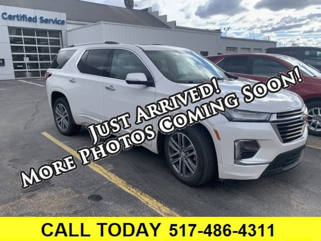 CARFAX One-Owner. Clean CARFAX. Bluetooth, Backup camera, **LEATHER**, **SUNROOF / MOONROOF**, Sold here new, Serviced here, Traverse High Country, 4D Sport Utility, 3.6L V6 SIDI VVT, 9-Speed Automatic, AWD, Jet Black/Clove w/Perforated Leather-Appointed Seat Trim, Heated 2nd Row Outboard Position Seats, Navigation System, Preferred Equipment Group 2LZ, Rear Park Assist w/Audible Warning, 10 Speakers, 20 Polished Aluminum Wheels, 3.49 Axle Ratio, 3rd row seats: split-bench, 4-Wheel Disc Brakes, 6-Way Power Front Passenger Seat, 8-Way Power Driver Seat Adjuster, ABS brakes, Air Conditioning, Alloy wheels, AM/FM radio: SiriusXM with 360L, Apple CarPlay/Android Auto, Auto High-beam Headlights, Auto-dimming door mirrors, Auto-dimming Rear-View mirror, Automatic temperature control, Bose Premium 10-Speaker Audio System Feature, Brake assist, Bumpers: body-color, Compass, Delay-off headlights, Driver door bin, Driver vanity mirror, Dual front impact airbags, Dual front side impact airbags, Electronic Stability Control, Emergency communication system: OnStar Guidance, Four wheel independent suspension, Front anti-roll bar, Front Bucket Seats, Front Center Armrest, Front dual zone A/C, Front Passenger 2-Way Power Lumbar, Front reading lights, Fully automatic headlights, Garage door transmitter, Heated door mirrors, Heated Driver & Front Passenger Seats, Heated front seats, Heated rear seats, Heated steering wheel, Illuminated entry, Leather steering wheel, Low tire pressure warning, Memory seat, Occupant sensing airbag, Outside temperature display, Overhead airbag, Overhead console, Panic alarm, Passenger door bin, Passenger vanity mirror, Perforated Leather-Appointed Seat Trim, Power door mirrors, Power Driver Lumbar Control, Power driver seat, Power Liftgate, Power moonroof: Dual SkyScape, Power passenger seat, Power steering, Power windows, Premium audio system: Chevrolet Infotainment 3 Plus, Radio data system, Radio: Chevrolet Infotainment 3 Plus System w/Navi, Rear air conditioning, Rear anti-roll bar, Rear reading lights, Rear window defroster, Rear window wiper, Remote keyless entry, Roof rack: rails only, Security system, SiriusXM w/360L, Speed control, Speed-sensing steering, Spoiler, Steering wheel memory, Steering wheel mounted audio controls, Tachometer, Telescoping steering wheel, Tilt steering wheel, Traction control, Trip computer, Turn signal indicator mirrors, Variably intermittent wipers, Ventilated Driver & Front Passenger Seats, Ventilated front seats, Voltmeter, Traverse High Country, 4D Sport Utility, 3.6L V6 SIDI VVT, 9-Speed Automatic, AWD, Jet Black/Clove w/Perforated Leather-Appointed Seat Trim, Heated 2nd Row Outboard Position Seats, Navigation System, Preferred Equipment Group 2LZ, Rear Park Assist w/Audible Warning. Iridescent Pearl Tricoat 2022 Chevrolet Traverse High Country AWD 9-Speed Automatic 3.6L V6 SIDI VVTRecent Arrival!