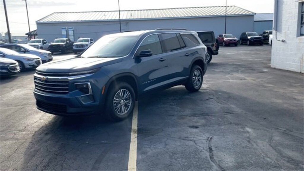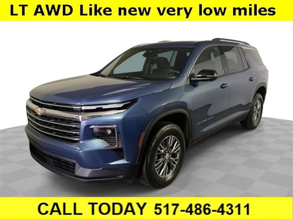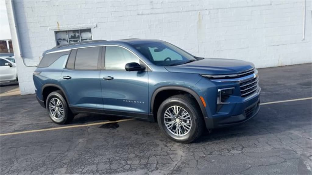 CARFAX One-Owner. Clean CARFAX. Bluetooth, Backup camera, **STILL UNDER FACTORY WARRANTY**, Sold here new, Traverse LT 2LT, 4D Sport Utility, 2.5L DOHC, 8-Speed Automatic, AWD, Driver Confidence Package, HD Surround Vision, Navigation System, Power Outlet, Preferred Equipment Group 2LT, Rear Pedestrian Alert, Traffic Sign Recognition, 3rd row seats: split-bench, 4-Way Manual Front Passenger Seat Adjuster, 4-Wheel Disc Brakes, 6 Speakers, 6-Speaker Audio System Feature, 8-Way Power Driver Seat Adjuster, ABS brakes, Air Conditioning, Alloy wheels, AM/FM radio: SiriusXM with 360L, Apple CarPlay/Android Auto, Auto High-beam Headlights, Automatic temperature control, Brake assist, Bumpers: body-color, Child-Seat-Sensing Airbag, Compass, Delay-off headlights, Driver door bin, Driver vanity mirror, Dual front impact airbags, Dual front side impact airbags, Electronic Stability Control, Emergency communication system, Exterior Parking Camera Rear, Four wheel independent suspension, Front anti-roll bar, Front Bucket Seats, Front Center Armrest, Front dual zone A/C, Front reading lights, Fully automatic headlights, Heated door mirrors, Heated front seats, Heated steering wheel, Illuminated entry, Low tire pressure warning, Occupant sensing airbag, Outside temperature display, Overhead airbag, Overhead console, Panic alarm, Passenger door bin, Passenger vanity mirror, Power door mirrors, Power driver seat, Power Liftgate, Power steering, Power windows, Premium Cloth Seat Trim, Radio data system, Radio: Audio System w/17.7 Diagonal Display, Rear air conditioning, Rear anti-roll bar, Rear reading lights, Rear window defroster, Rear window wiper, Remote keyless entry, Security system, SiriusXM w/360L Trial Subscription, Speed control, Speed-sensing steering, Spoiler, Steering wheel mounted audio controls, Tachometer, Telescoping steering wheel, Tilt steering wheel, Traction control, Trip computer, Turn signal indicator mirrors, Variably intermittent wipers, Voltmeter, Wheels: 18 Grazen Metallic Machined-Face Aluminum, Traverse LT 2LT, 4D Sport Utility, 2.5L DOHC, 8-Speed Automatic, AWD, Driver Confidence Package, HD Surround Vision, Navigation System, Power Outlet, Preferred Equipment Group 2LT, Rear Pedestrian Alert, Traffic Sign Recognition. Lakeshore Blue Metallic 2025 Chevrolet Traverse LT 2LT AWD 8-Speed Automatic 2.5L DOHC
