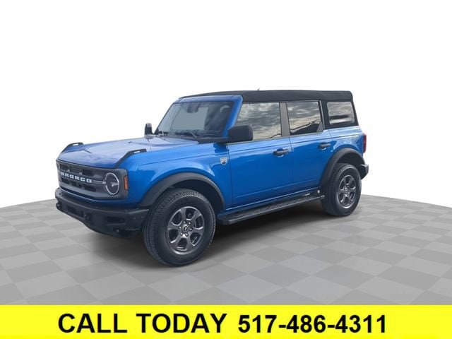 Bluetooth, Backup camera, 4D Sport Utility, 2.3L EcoBoost I-4, 10-Speed Automatic, 4WD, 2-Door Intelligent Access w/Lock/Unlock, ABS brakes, Ambient Footwell Lighting, Auto-Dimming Interior Rear-View Mirror, Compass, Connected Navigation, Dr & Pass Illuminated Sliding Visor Vanity Mirrors, Dual-Zone Electronic Automatic Temperature Control, Electronic Stability Control, Enhanced Voice Recognition, Equipment Group 222A Mid Package, Front Row Heated Seats, Heated door mirrors, Illuminated entry, Low tire pressure warning, Power Outlet - Back Side of Center Floor Console, Rear Parking Sensors, Remote keyless entry, Remote Start System, Traction control, 4-Wheel Disc Brakes, 6 Speakers, Air Conditioning, AM/FM radio: SiriusXM with 360L, AM/FM Stereo, Auto High-beam Headlights, Brake assist, Delay-off headlights, Driver door bin, Driver vanity mirror, Dual front impact airbags, Dual front side impact airbags, Emergency communication system: 911 Assist, Exterior Parking Camera Rear, Front anti-roll bar, Front Bucket Seats, Front Center Armrest, Front reading lights, Front wheel independent suspension, Fully automatic headlights, Integrated roll-over protection, Occupant sensing airbag, Outside temperature display, Overhead airbag, Overhead console, Panic alarm, Passenger door bin, Passenger vanity mirror, Power door mirrors, Power steering, Power windows, Radio data system, Security system, SiriusXM Radio w/360L, Speed control, Split folding rear seat, Steering wheel mounted audio controls, SYNC 4, Tachometer, Telescoping steering wheel, Tilt steering wheel, Trip computer, Variably intermittent wipers, 4D Sport Utility, 2.3L EcoBoost I-4, 10-Speed Automatic, 4WD, 2-Door Intelligent Access w/Lock/Unlock, ABS brakes, Ambient Footwell Lighting, Auto-Dimming Interior Rear-View Mirror, Compass, Connected Navigation, Dr & Pass Illuminated Sliding Visor Vanity Mirrors, Dual-Zone Electronic Automatic Temperature Control, Electronic Stability Control, Enhanced Voice Recognition, Equipment Group 222A Mid Package, Front Row Heated Seats, Heated door mirrors, Illuminated entry, Low tire pressure warning, Power Outlet - Back Side of Center Floor Console, Rear Parking Sensors, Remote keyless entry, Remote Start System, Traction control. Velocity Blue Metallic 2022 Ford Bronco Big Bend 4WD 10-Speed Automatic 2.3L EcoBoost I-4