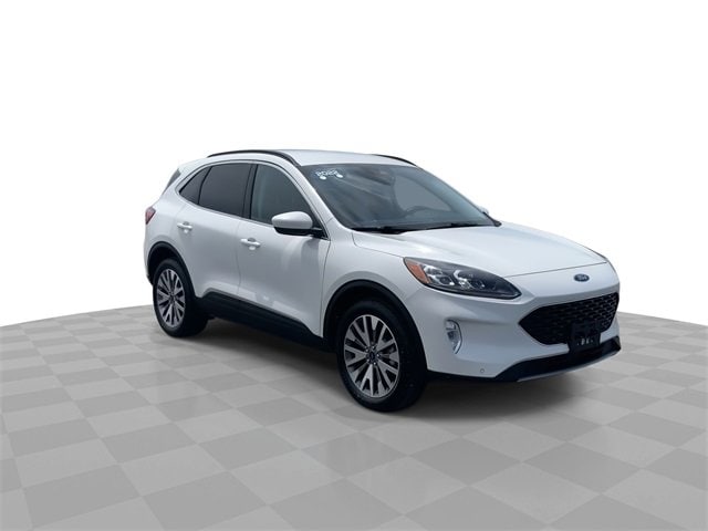 CARFAX One-Owner. Clean CARFAX. Bluetooth, Backup camera, Escape Titanium, 4D Sport Utility, EcoBoost 2.0L I4 GTDi DOHC Turbocharged VCT, AWD, Equipment Group 401A, Navigation System, 3.47 Axle Ratio, 4-Wheel Disc Brakes, 6 Speakers, ABS brakes, Air Conditioning, Alloy wheels, AM/FM radio: SiriusXM, AM/FM Stereo, Auto High-beam Headlights, Auto-dimming Rear-View mirror, Automatic temperature control, Brake assist, Bumpers: body-color, Compass, Delay-off headlights, Driver door bin, Driver vanity mirror, Dual front impact airbags, Dual front side impact airbags, Electronic Stability Control, Emergency communication system: SYNC 3 911 Assist, Exterior Parking Camera Rear, FordPass Connect, Four wheel independent suspension, Front anti-roll bar, Front Bucket Seats, Front Center Armrest, Front dual zone A/C, Front fog lights, Front reading lights, Fully automatic headlights, Garage door transmitter, Heated ActiveX Trimmed Front Sport Contour Bucket Seats, Heated door mirrors, Heated front seats, Heated steering wheel, Illuminated entry, Knee airbag, Low tire pressure warning, Memory seat, Occupant sensing airbag, Outside temperature display, Overhead airbag, Overhead console, Panic alarm, Passenger door bin, Passenger vanity mirror, Power door mirrors, Power driver seat, Power Liftgate, Power passenger seat, Power steering, Power windows, Radio data system, Rain sensing wipers, Rear anti-roll bar, Rear reading lights, Rear seat center armrest, Rear window defroster, Rear window wiper, Remote keyless entry, Roof rack: rails only, Security system, Speed control, Speed-sensing steering, Speed-Sensitive Wipers, Split folding rear seat, Spoiler, Steering wheel mounted audio controls, SYNC 3 Communications & Entertainment System, Tachometer, Telescoping steering wheel, Tilt steering wheel, Traction control, Trip computer, Variably intermittent wipers, Voice-Activated Touchscreen Navigation System, Wheels: 19 Machined-Face Aluminum, Escape Titanium, 4D Sport Utility, EcoBoost 2.0L I4 GTDi DOHC Turbocharged VCT, AWD, Equipment Group 401A, Navigation System. Star White Metallic Tri-Coat 2022 Ford Escape Titanium AWD 8-Speed Automatic EcoBoost 2.0L I4 GTDi DOHC Turbocharged VCT